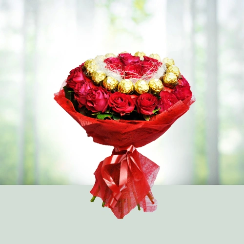 24 Red Roses Flowers Bouquet with Ferroro Rocher Online Delivery in India by FlowerShopIndia.com