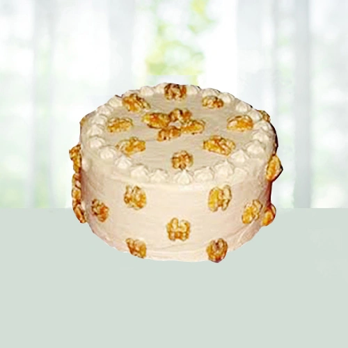 Eggless Butterscotch Cake. Weight-Half Kg-Eggless Cake online delivery in India with personalised message card by FlowerShopIndia.com